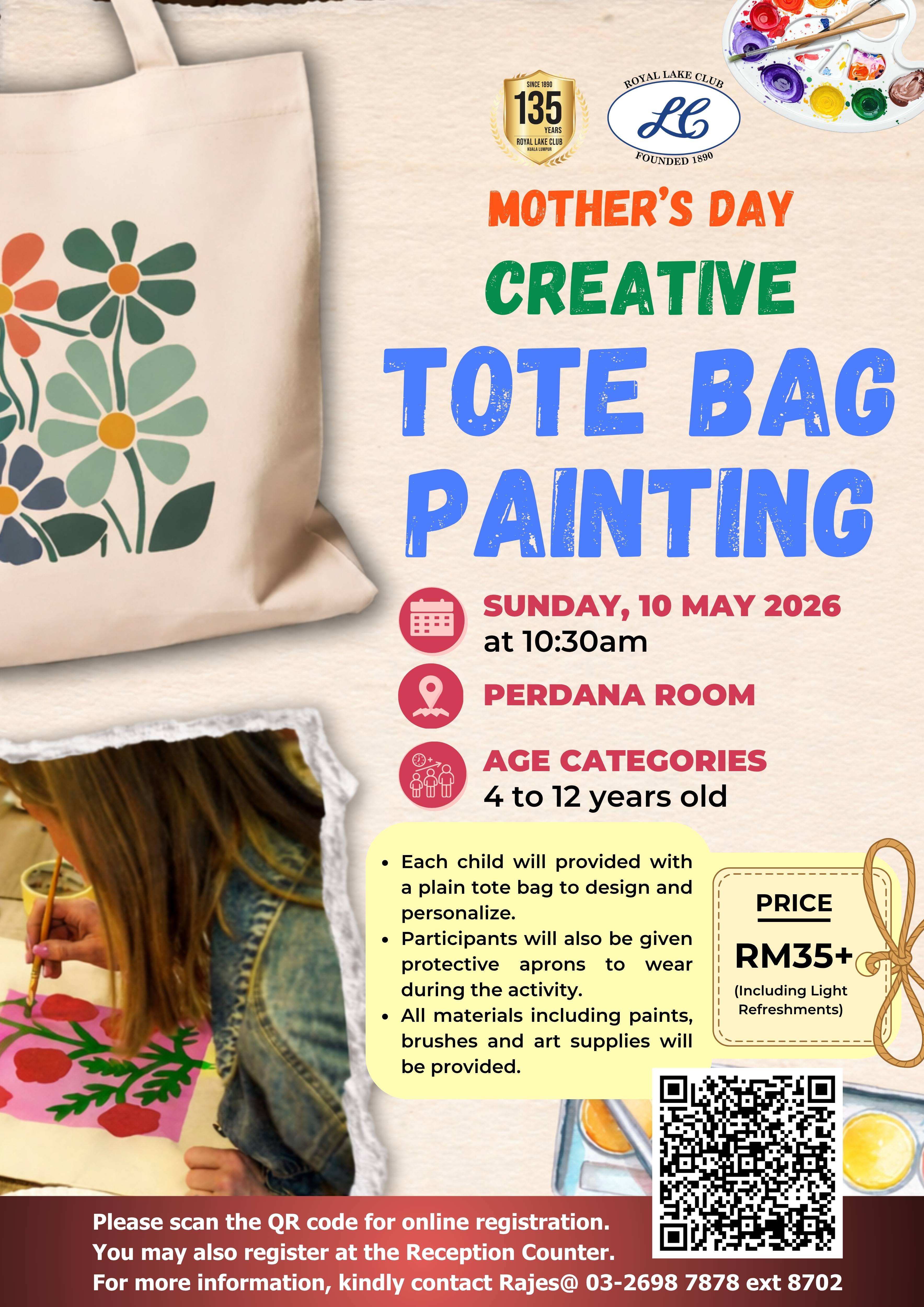 Mother’s Day Creative Tote Bag Painting Saturday, 25 April 2026 2:00pm – 5:00pm @ The Orchid Read More »
